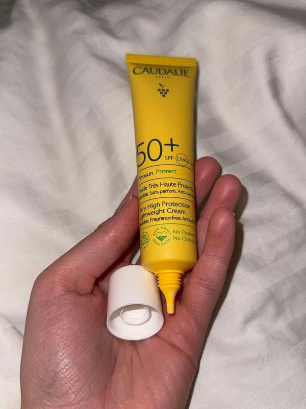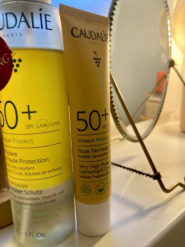 De Vinosun Fluide met zeer hoge bescherming SPF50+ heeft een hogere beschermingsfactor dan de Antirimpel Zonnecrème SPF50. Hij werd ook geformuleerd zonder parfum en de textuur is lichter.2. Is de Vinosun Fluide met zeer hoge bescherming SPF50+ geschikt voor de gevoelige huid?
