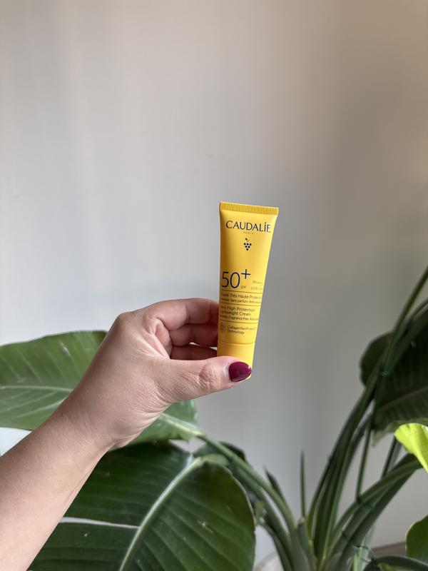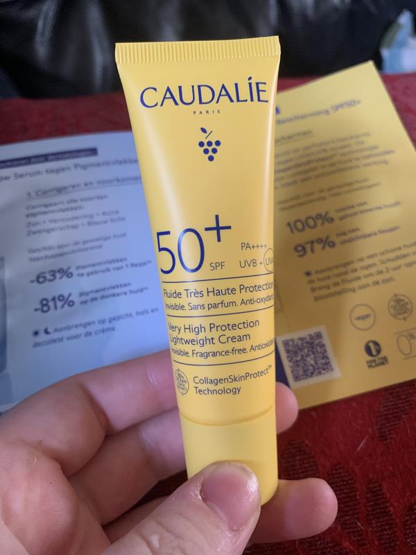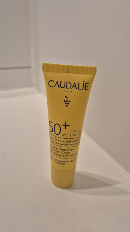 Ik draag dagelijks zonnecrème op mijn gezicht. Deze is ideaal voor onder mijn make-up, hij plakt niet en geeft geen witte glans. Ik vind deze beter dan de andere zonnecrème’s van caudalie, voor mijn gezicht.