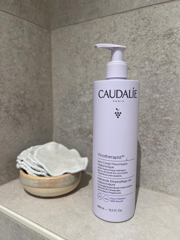 De Voedende Lichaamsverzorging met hyaluronzuur hydrateert en voedt meteen voor een zachte, soepele en stralende huid de hele dag lang, net zoals na een verzorging in de Spa Vinothérapie™. De frisse en lichte textuur trekt snel in zonder een vette laag na te laten en hult de huid in een subtiel parfum.
